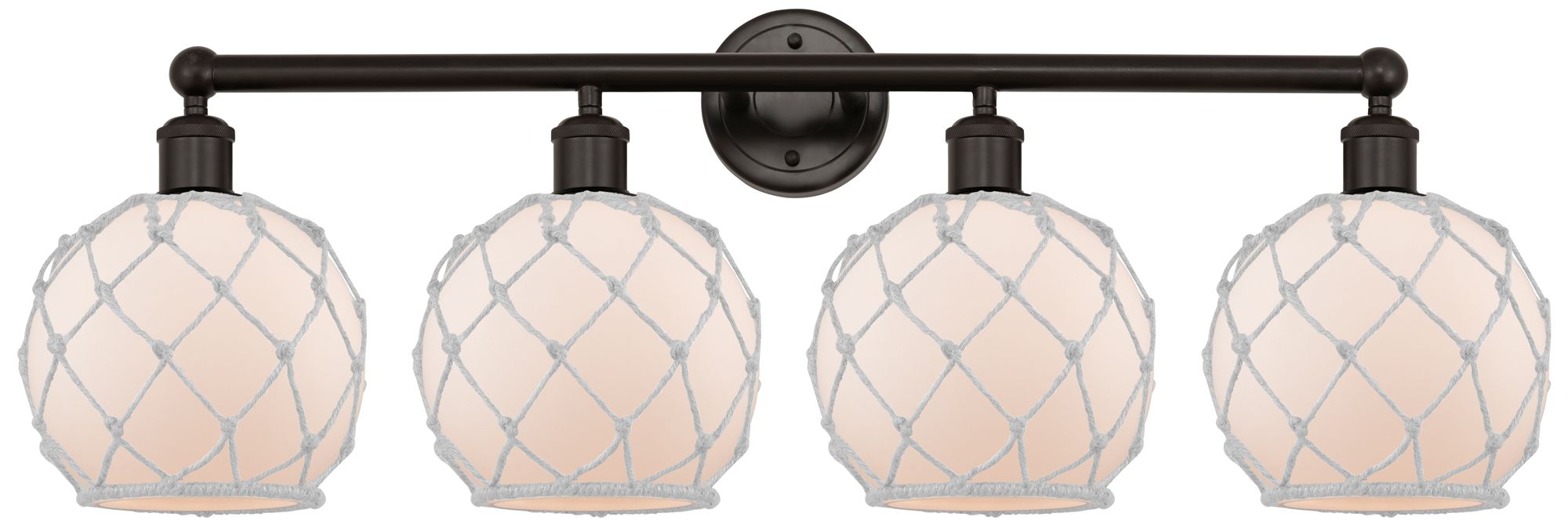 Edison Farmhouse 35"W 4 Light Oiled Bronze Bath Light w/ White Shade
