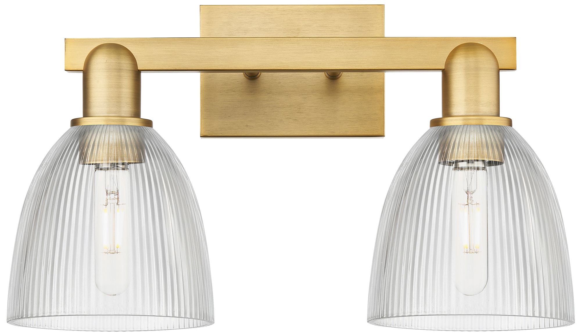 Arcadia Castile 17"W 2 Light Brushed Brass Vanity Light w/ Clear Shade