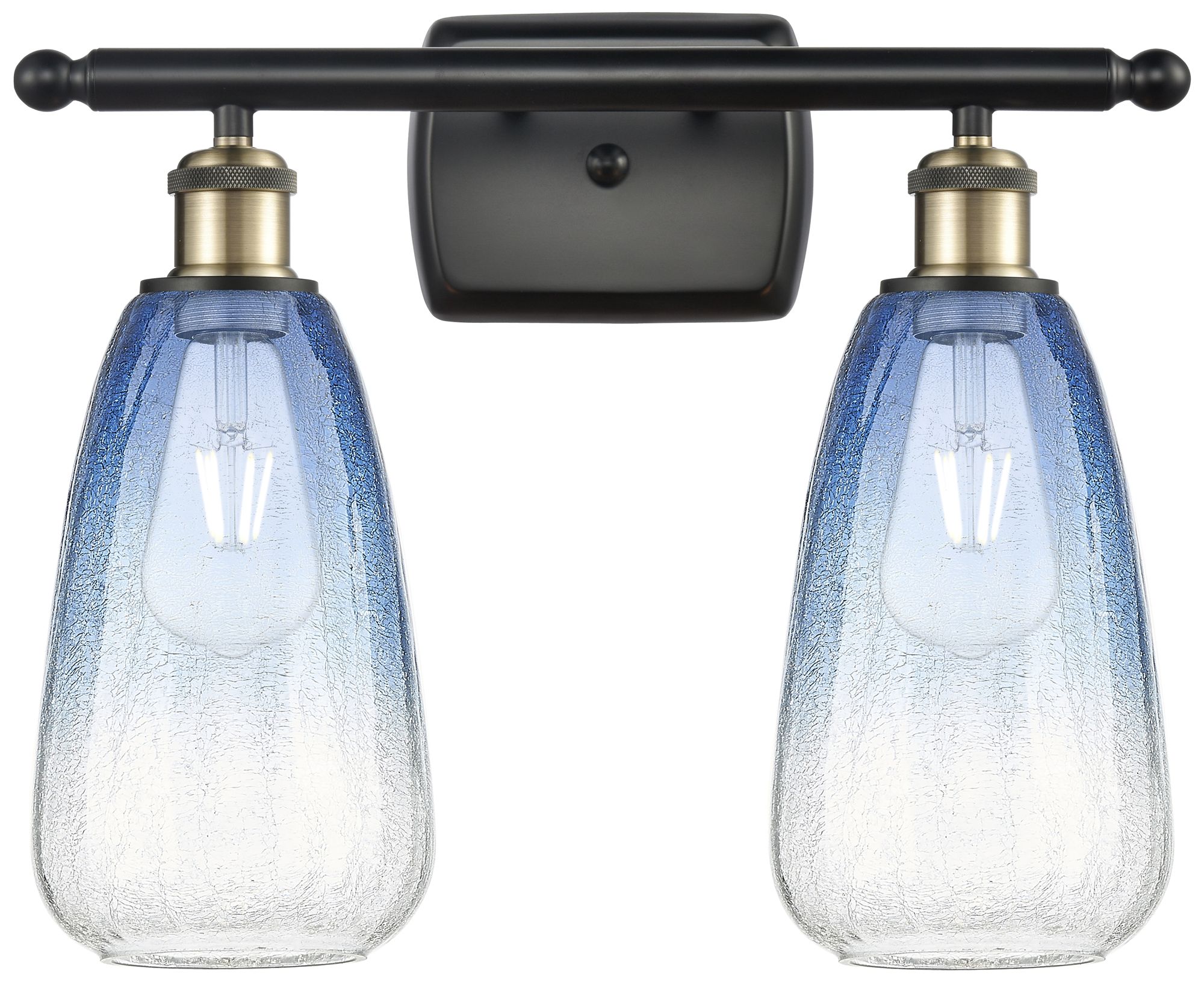 Ballston Brookhaven Almond 16"W 2-Lt Black Brass Vanity w/ Sapphire Shade