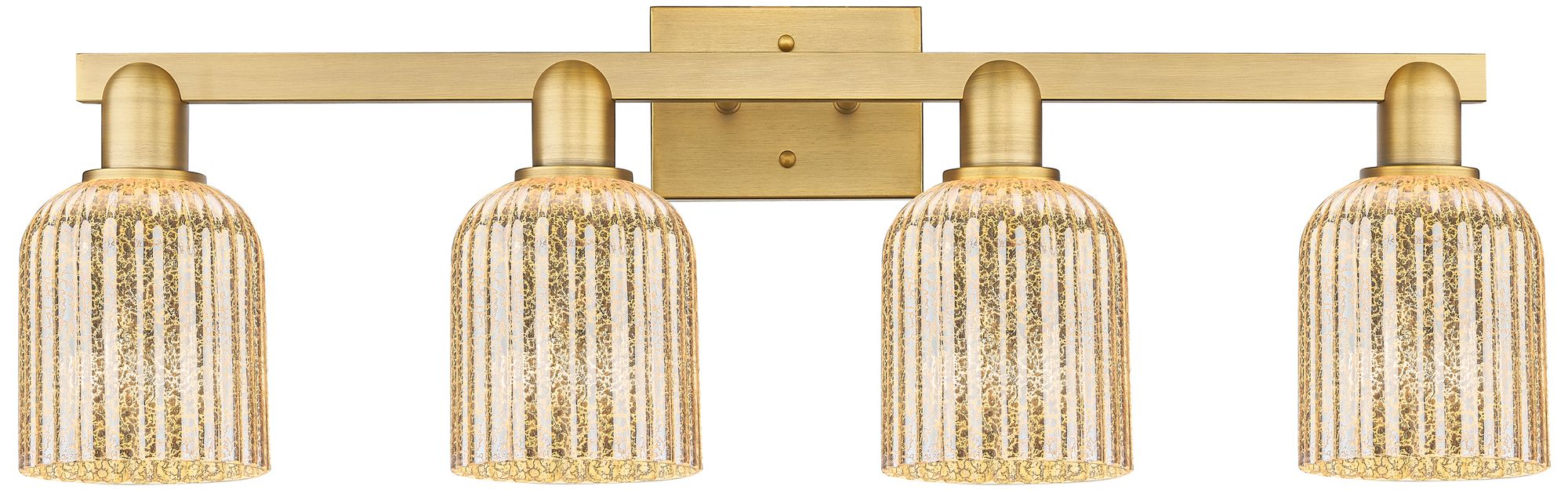 Bridal Veil 32"W 4 Light Brushed Brass Bath Light With Mercury Shade