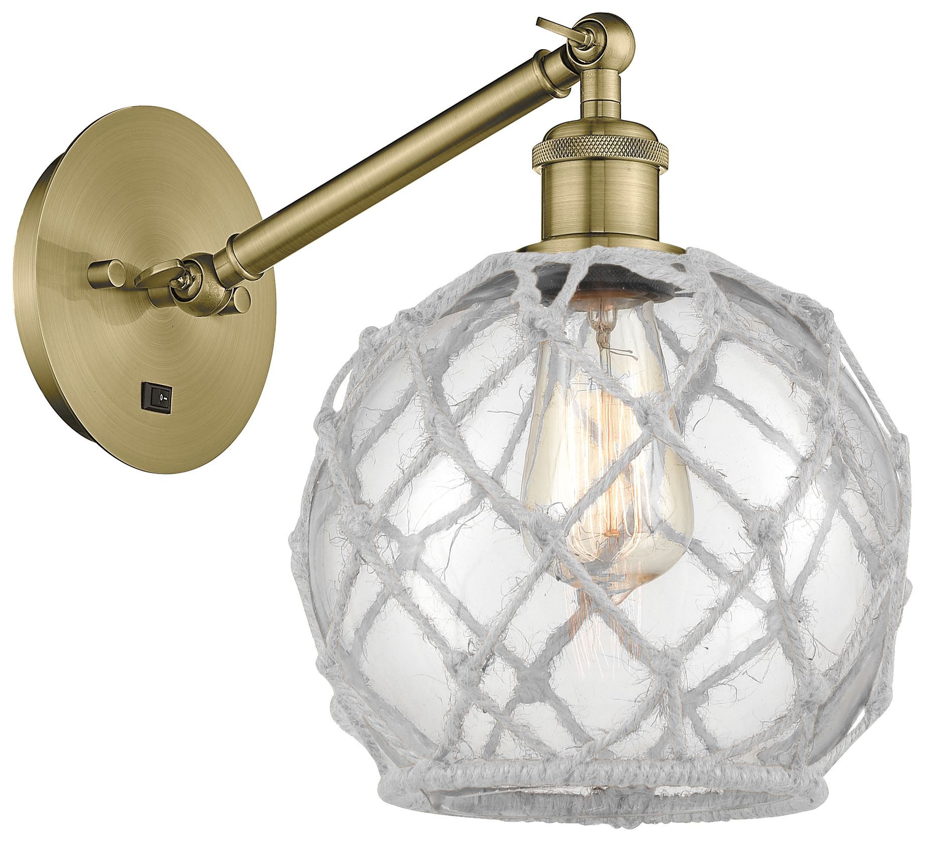 Ballston Farmhouse Rope 10"H Brass Swivel Sconce w/ Clear Glass Shade