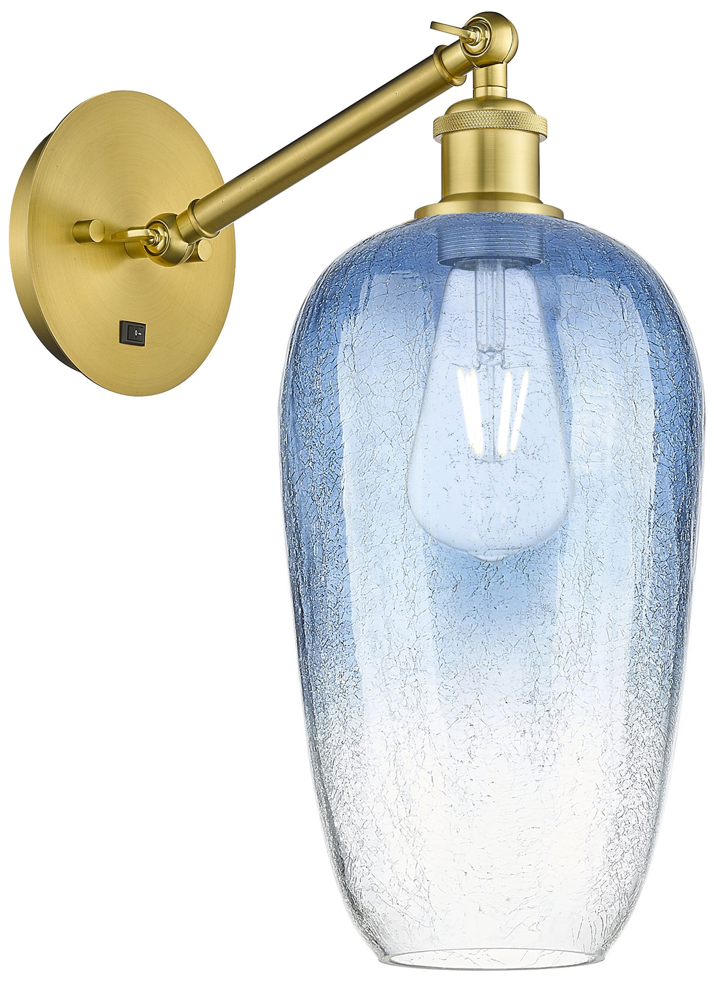 Edison Vaz 12.13" High Satin Gold Sconce With Princess Blue Shade