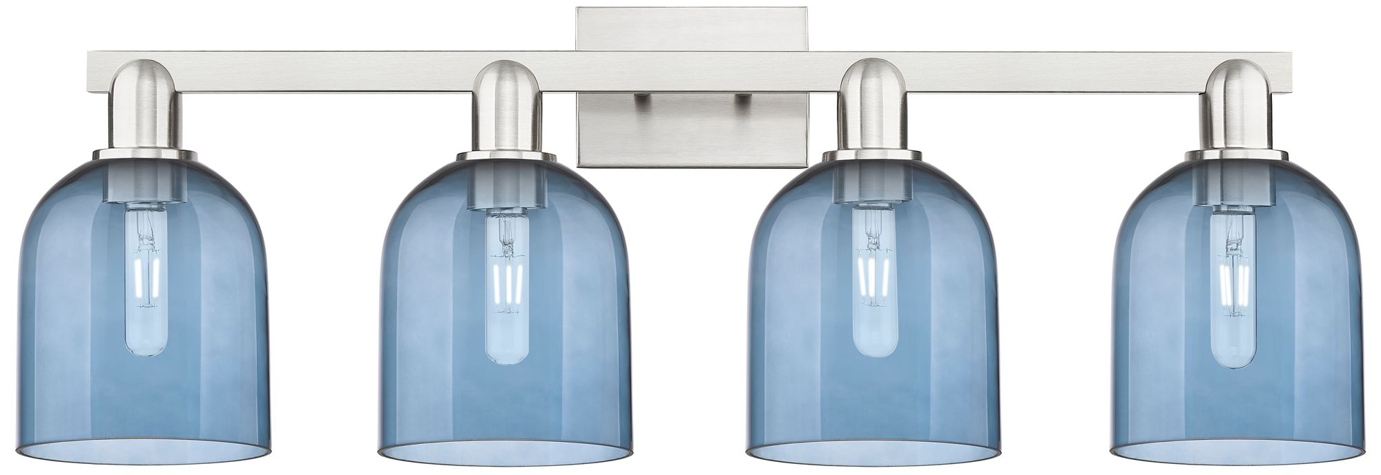 Arcadia Bella 33"W 4 Light Brushed Nickel Vanity Light With Blue Shade