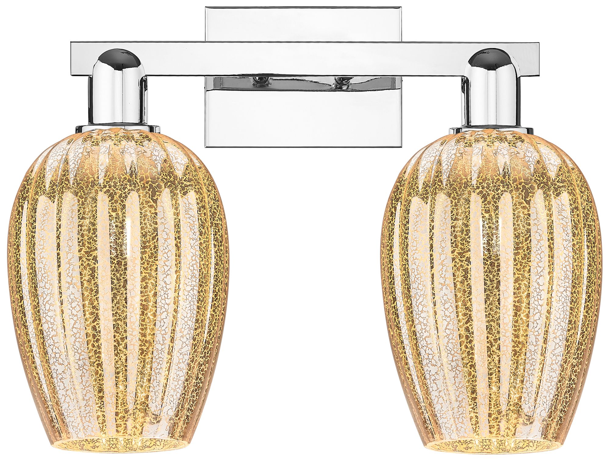 Preston 16"W 2 Light Chrome Bath Vanity Light With Flute Mercury Shade