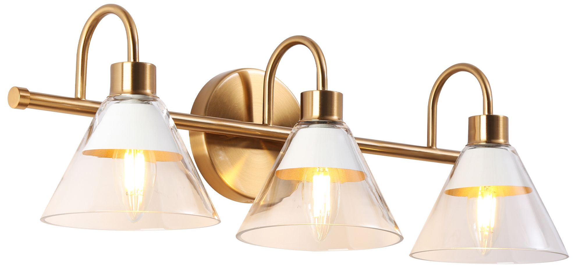 3-Lights 20.9"W Tapered White and Plated Copper Wall Lamp