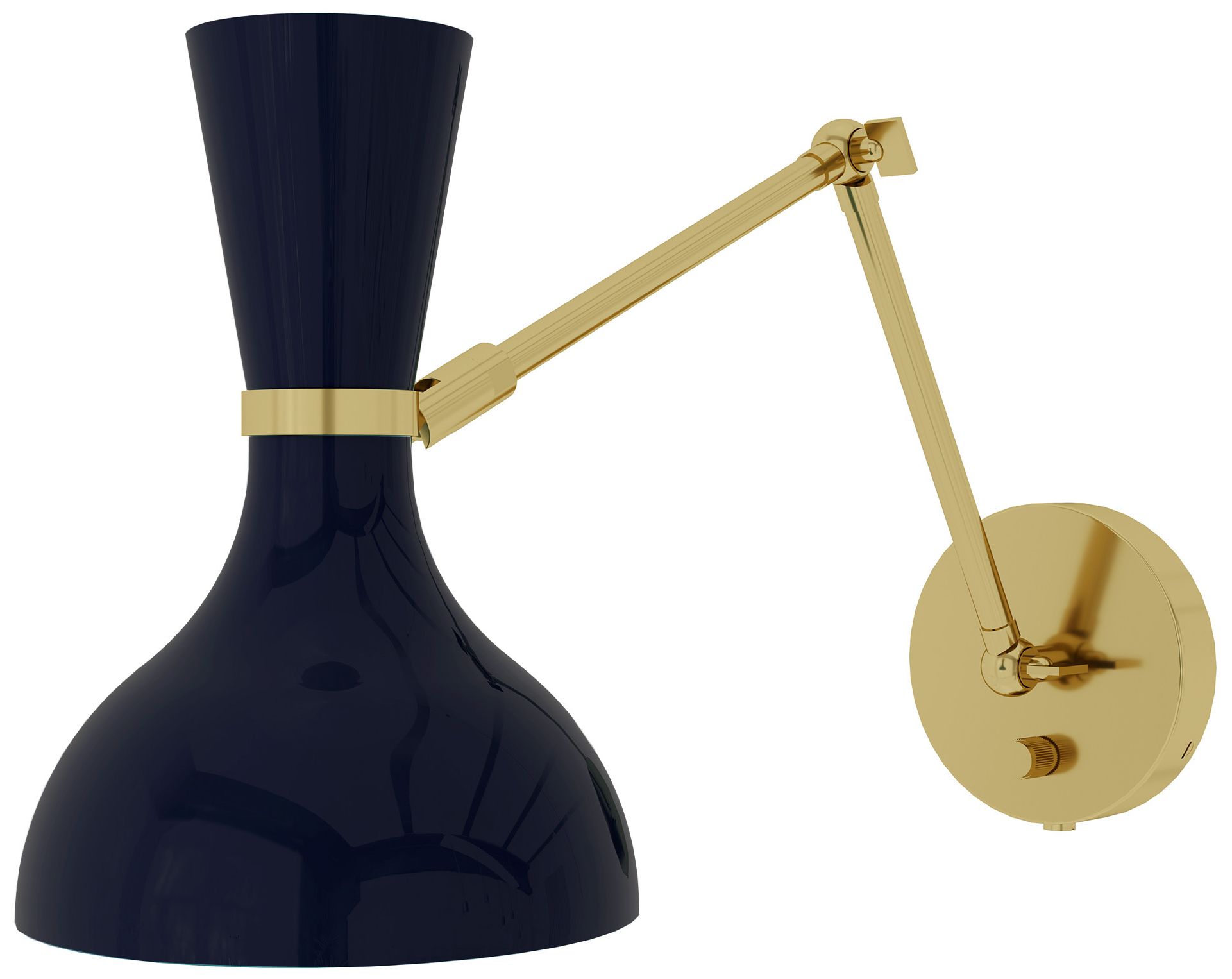 Clare 10.13"H Brass Adjustable Armed Wall Sconce w/ Midnight Blue Shade