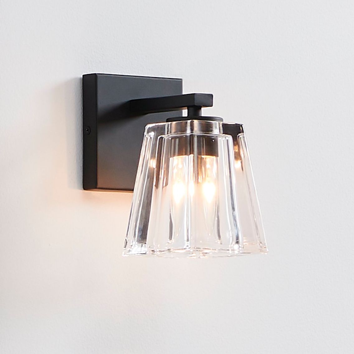 Thesis Valentin 4" Matte Black Vanity Light with Clear Pressed Glass Shade