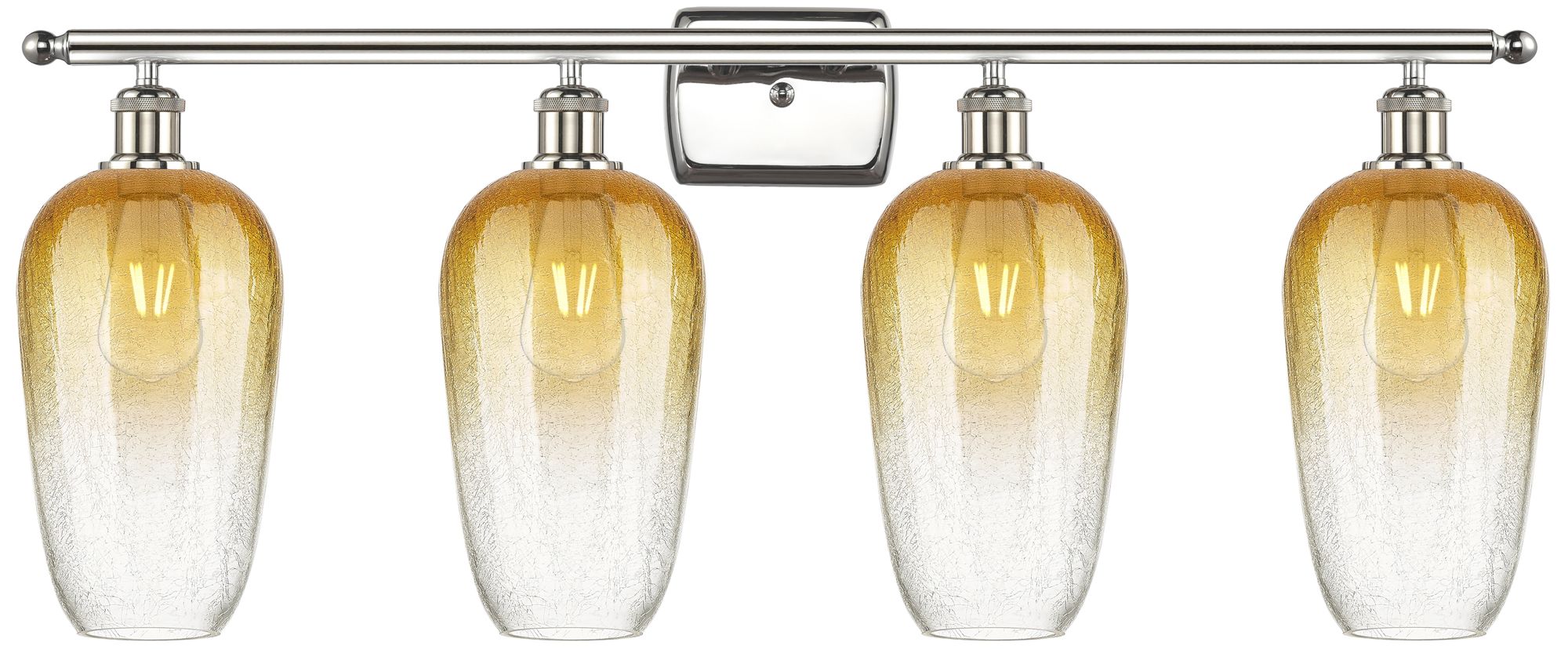 Ballston Brookhaven Flute 37"W 4-Lt Polished Nickel Vanity w/ Amber Shade