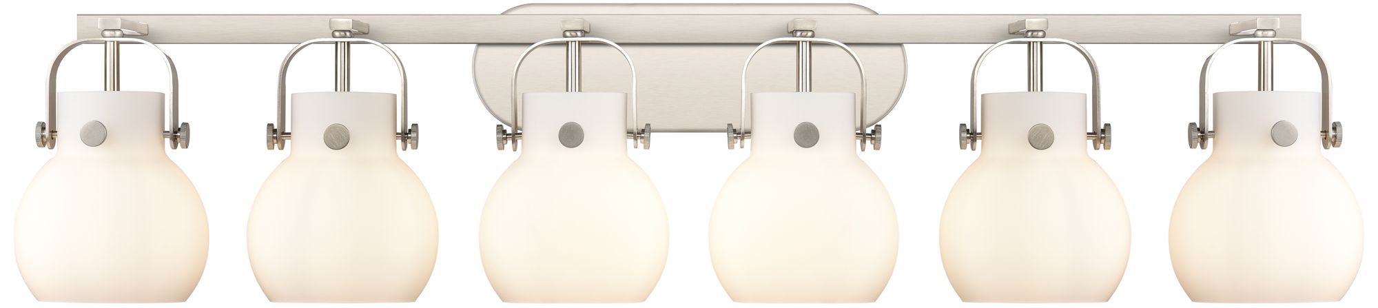 Pilaster II Sphere 45.5"W 6 Light Satin Nickel Bath Light w/ White Sha