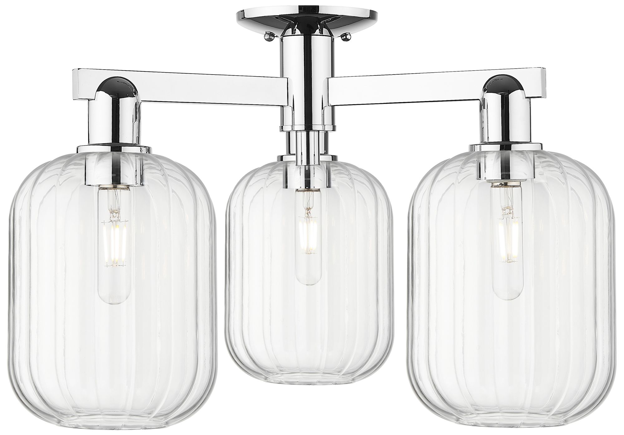 Preston 24"W 3 Light Polished Chrome Semi-Flush With Clear Jar Shade