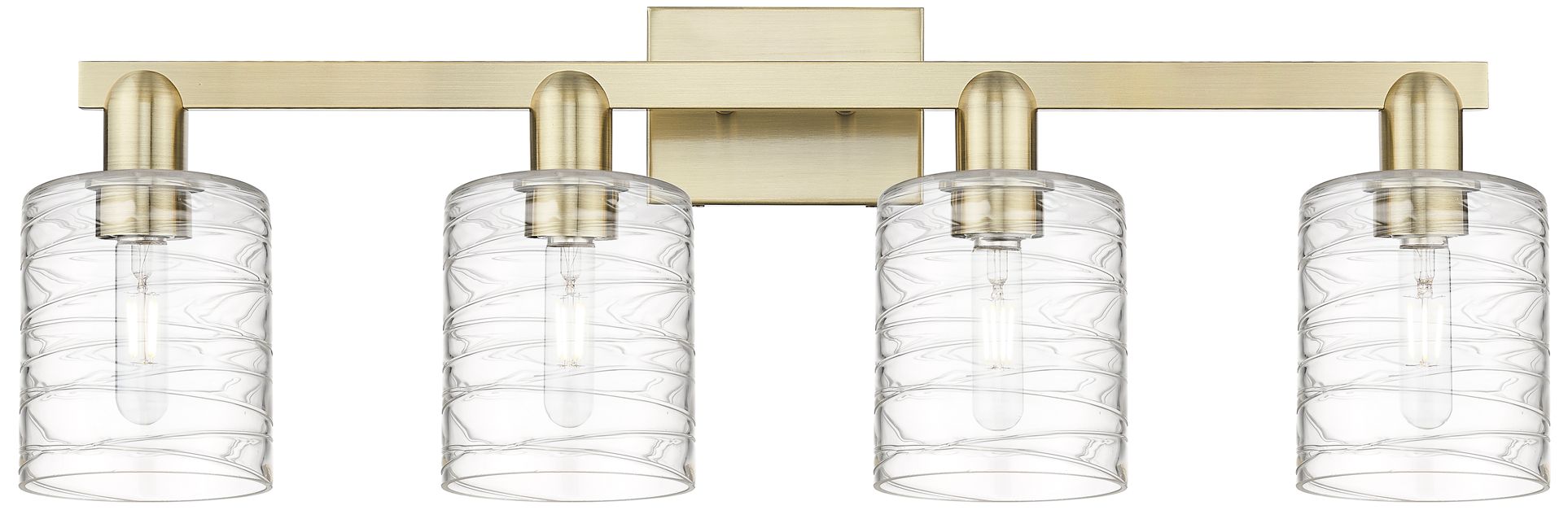 Arcadia Cobbleskill 32"W 4 Light Brass Bath Light w/ Deco Swirl Shade