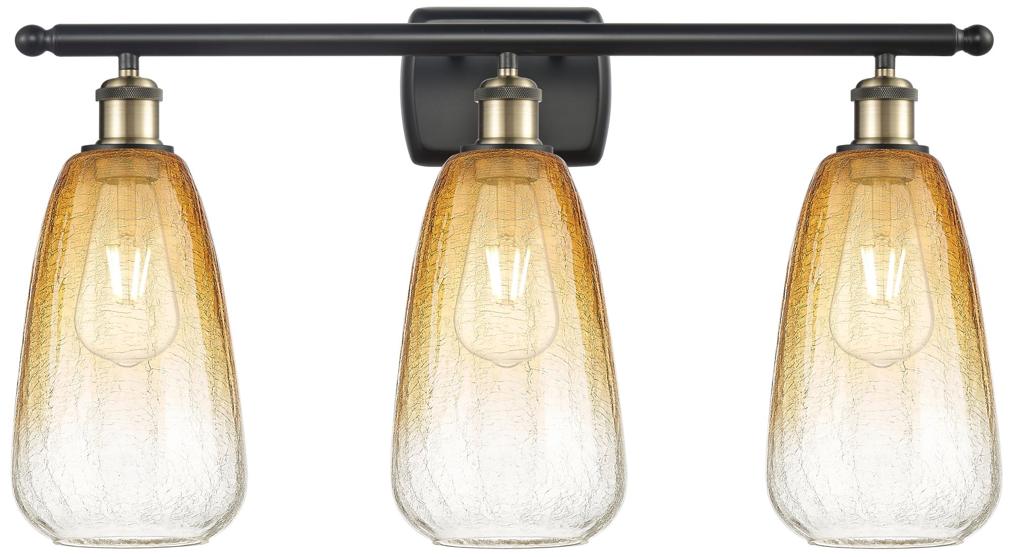 Ballston Brookhaven Almond 26"W 3-Lt Black Brass Vanity w/ Amber Shade
