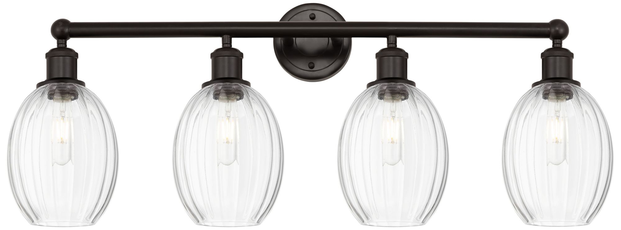 Edison Preston 33"W 4 Light Oiled Bronze Vanity w/ Clear Bulb Shade