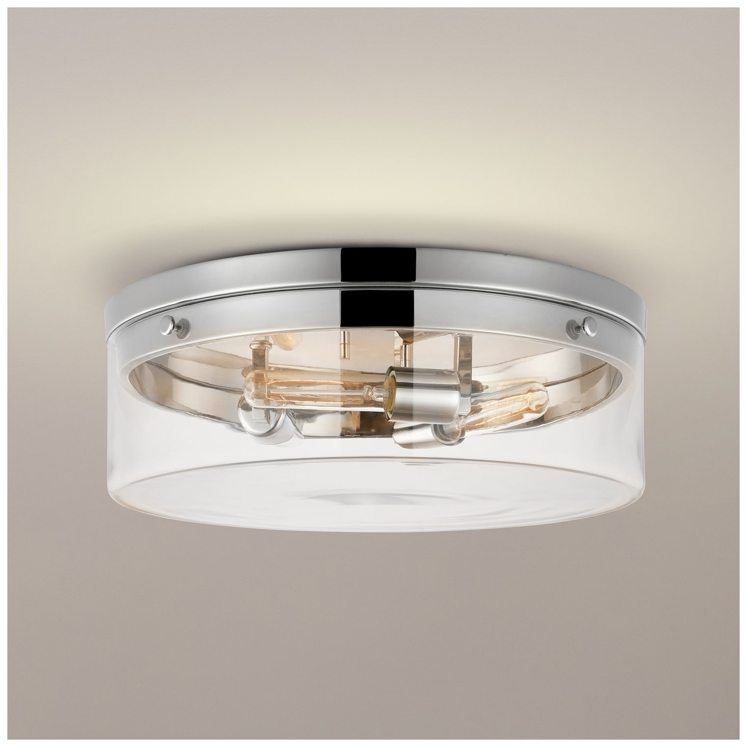 Intersection; Large Flush Mount Fixture; Polished Nickel with Clear Glass