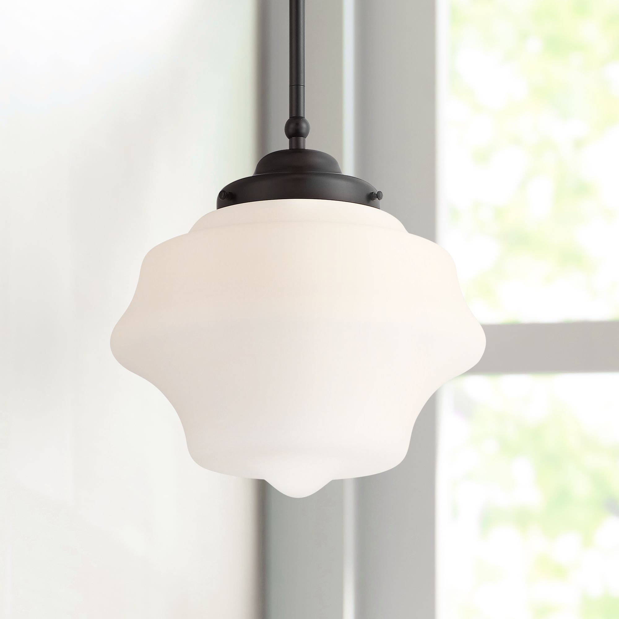 Possini Euro Schoolhouse 11"W Black and Opal Schoolhouse Pendant Light