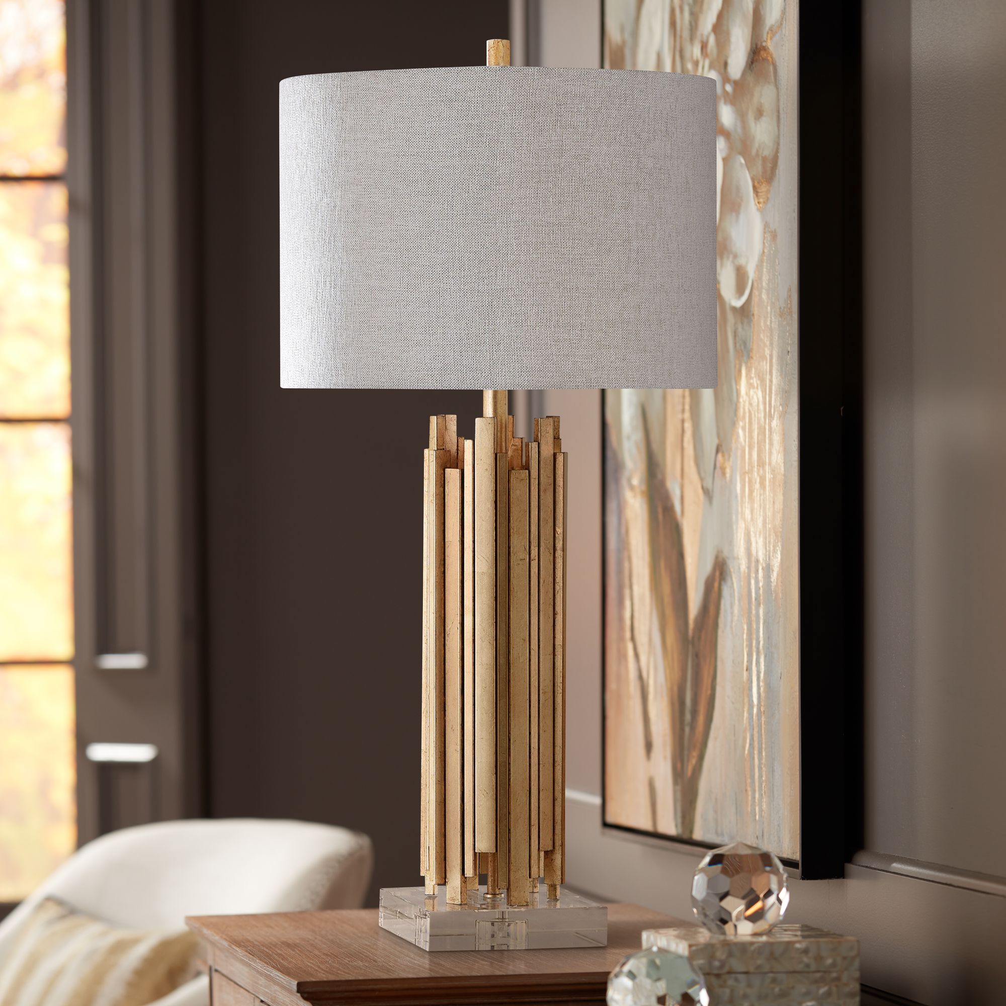Harp and Finial 34" High Venetian Gold Metal Abstract Table Lamp