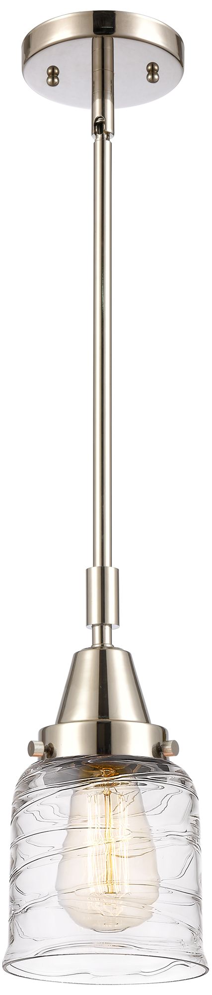 Caden Bell 5"W Polished Nickel Stem Hung Mini Pendant w/ Deco Swirl Sh