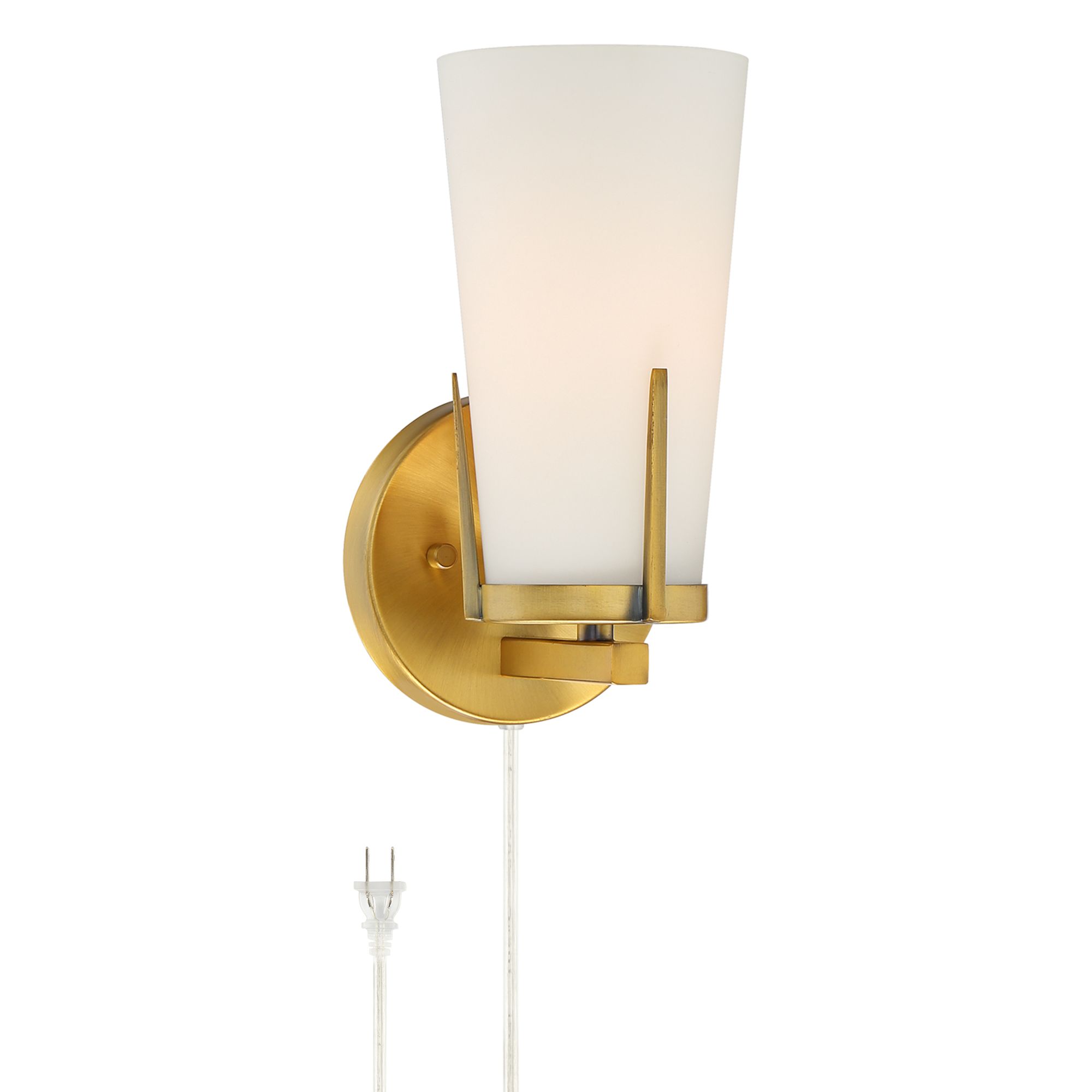 Possini Euro Vera 9 3/4" High Warm Brass Plug-In Wall Sconce