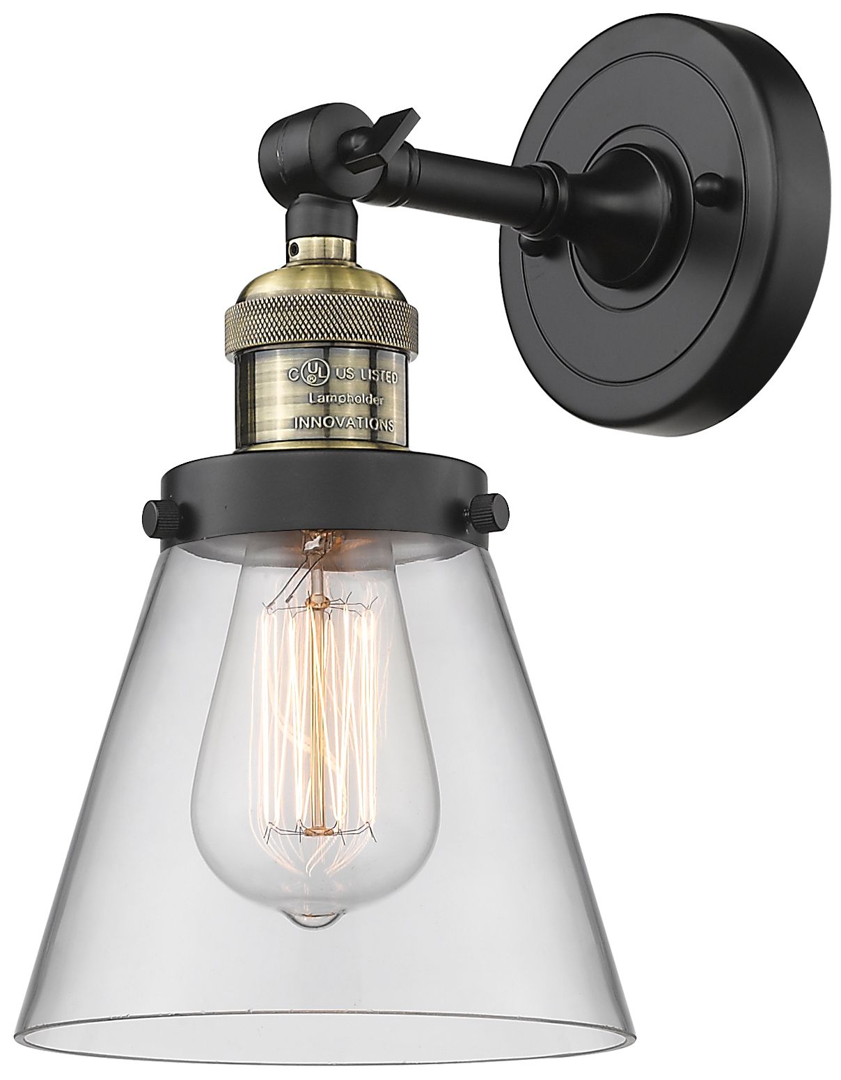Franklin Restoration Small Cone 6" Black Brass Sconce w/ Clear Shade