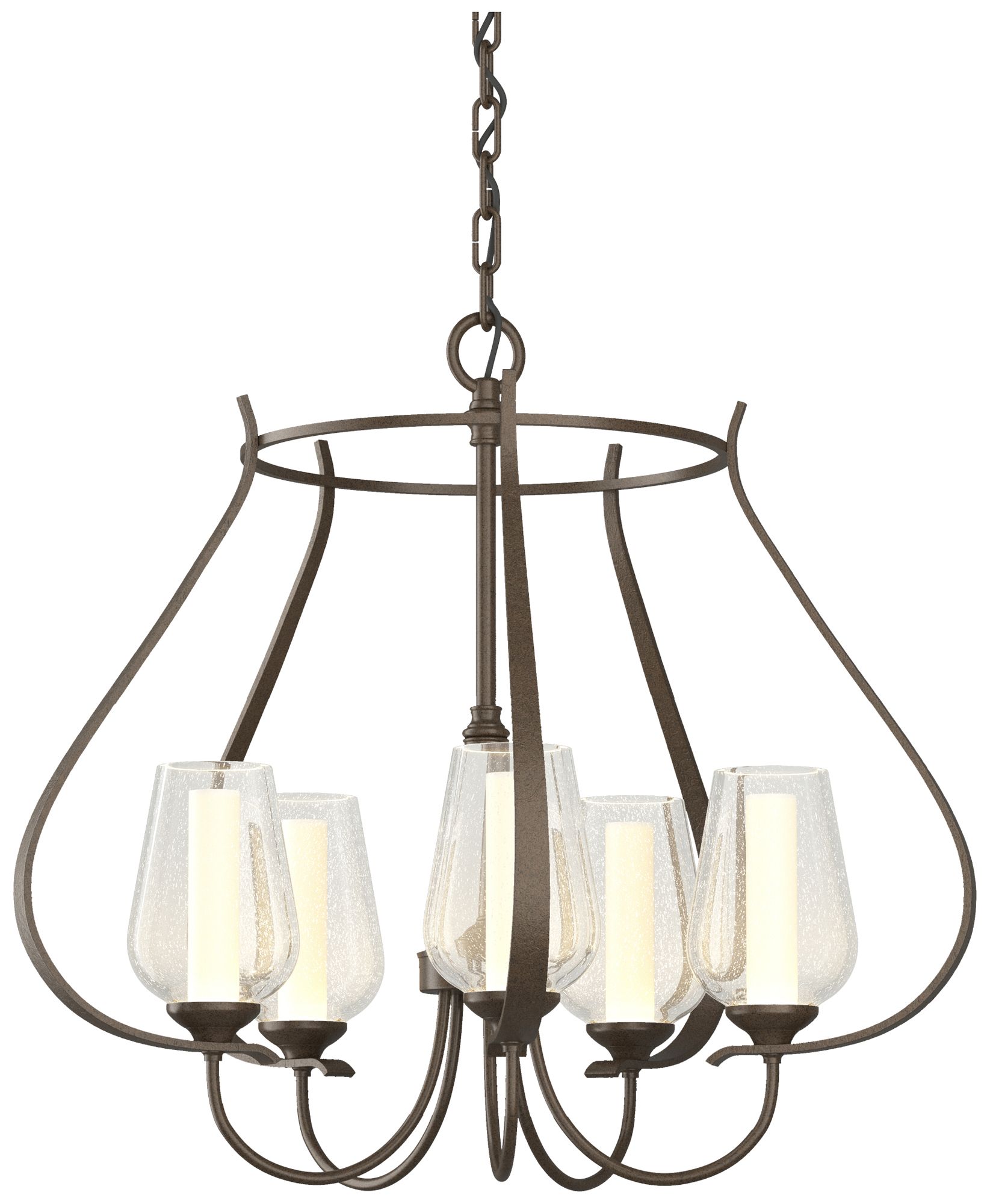 Flora 22.2" Wide 5 Arm Bronze Chandelier With Opal and Seeded Glass