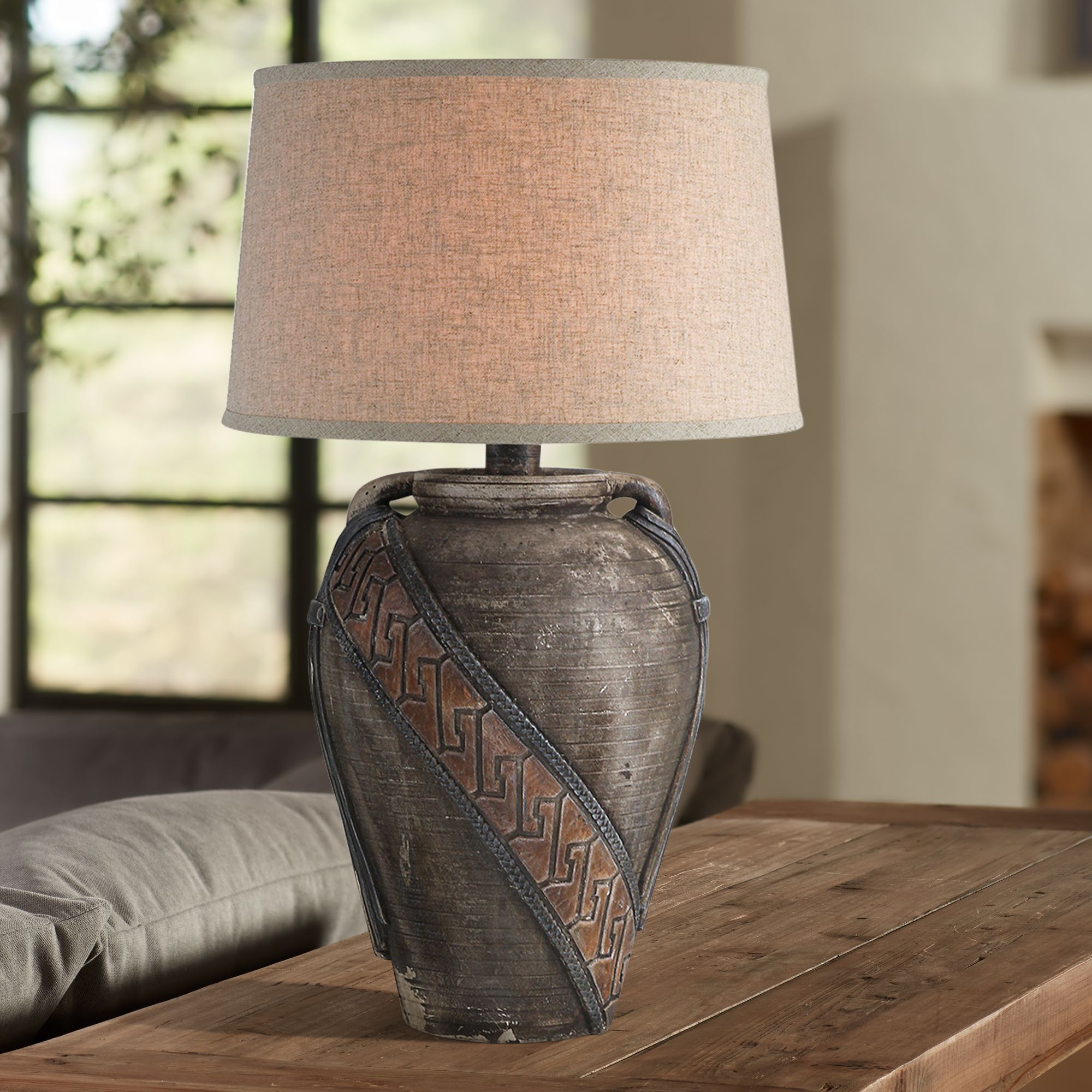 Moxley Earthen Brown 29 1/2" Hydrocal 2-Handle Jug Table Lamp