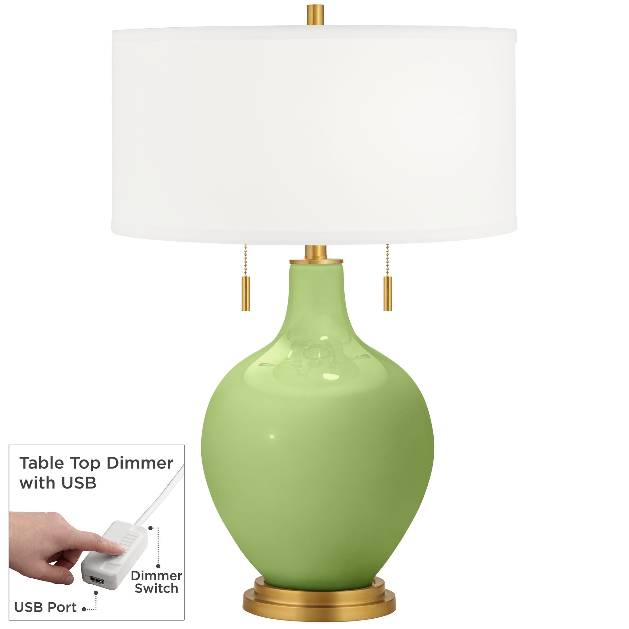 Color Plus Toby Brass 28" Lime Rickey Green Table Lamp with USB Dimmer