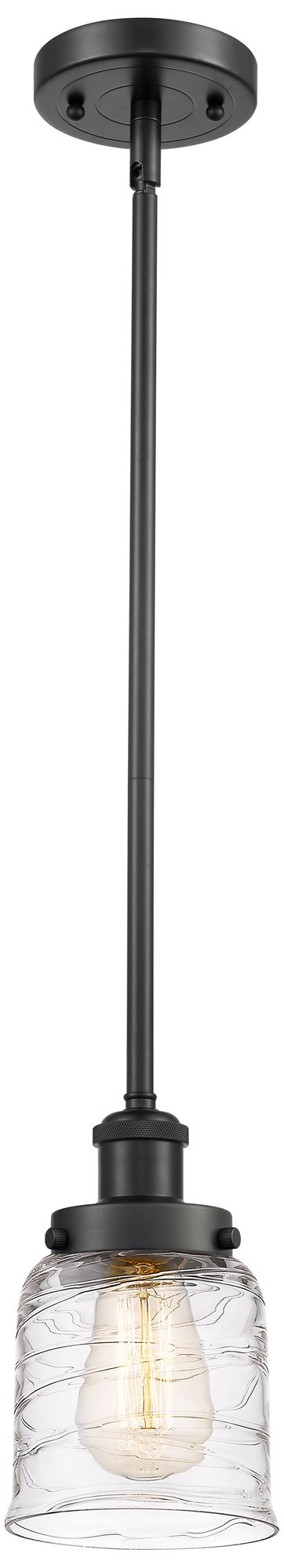 Ballston Urban Bell 5" Matte Black Stemmed Mini Pendant w/ Deco Swirl
