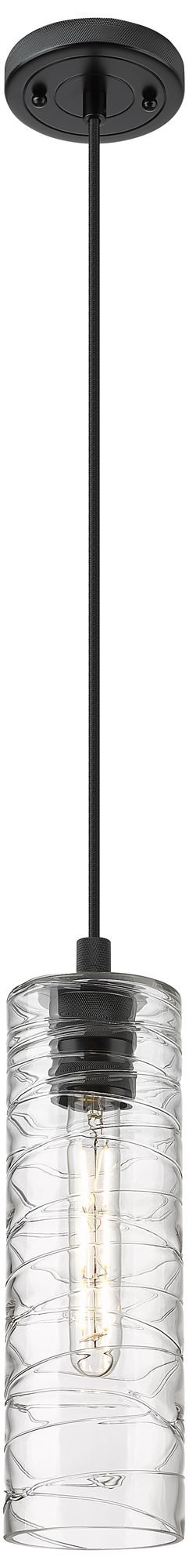 Crown Point 4" Wide Cord Hung Matte Black Pendant With Deco Swirl Shad