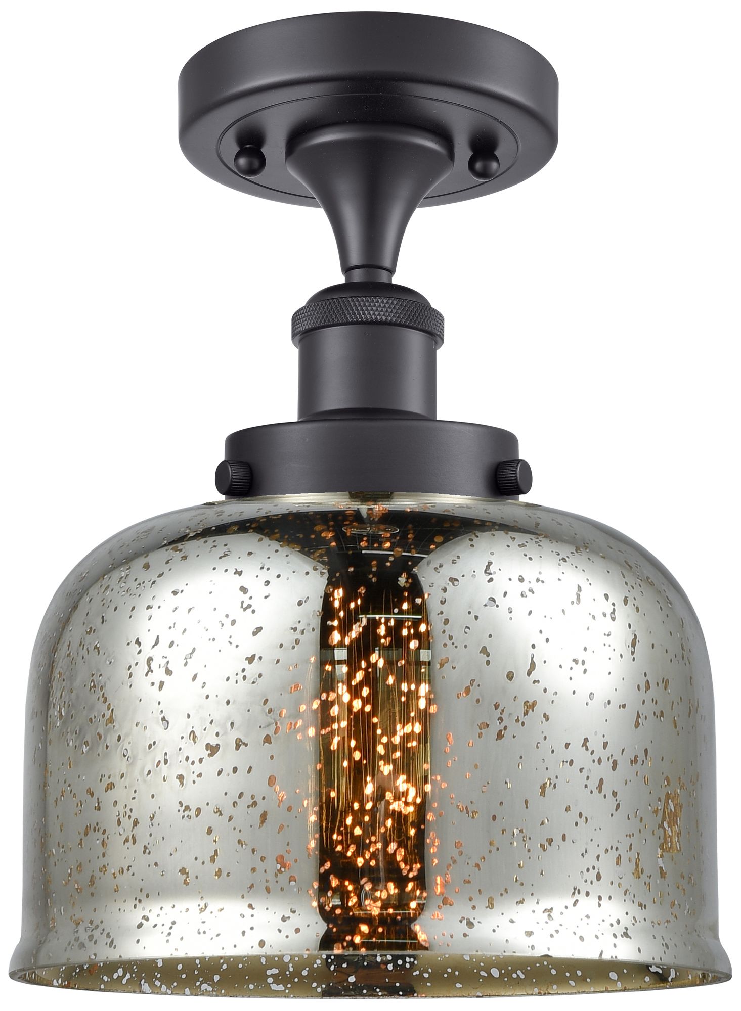 Ballston Urban Bell 8" Semi-Flush Mount - Matte Black - Silver Mercur
