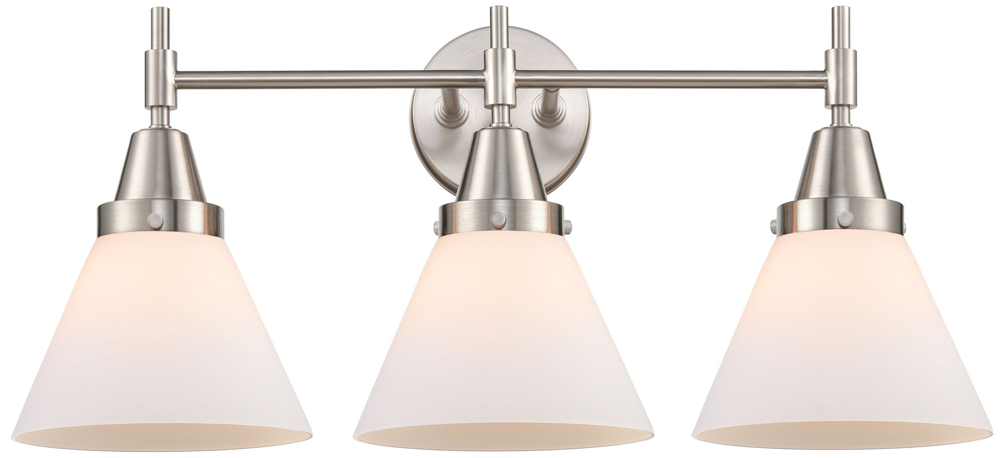 Caden Cone 25.75"W 3 Light Satin Nickel Bath Vanity Light w/ White Sha