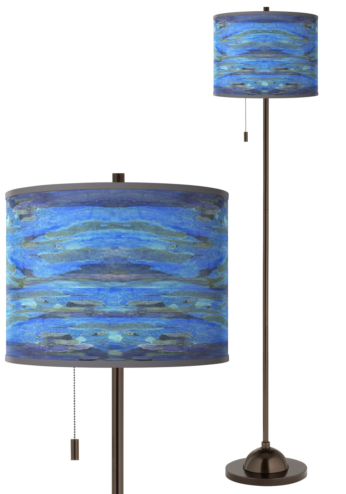 Giclee Glow 62" Oceanside Blue Shade with Bronze Club Floor Lamp