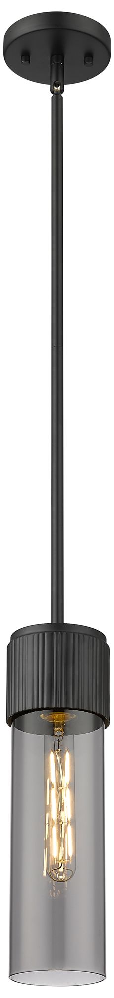 Bolivar 4" Wide Matte Black Stem Hung Pendant With Plated Smoke Glass