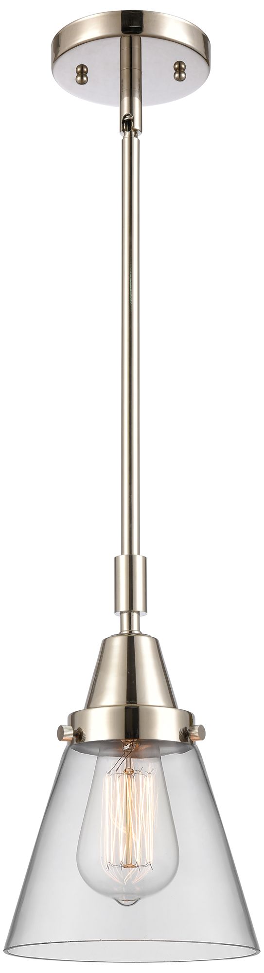 Caden Cone 6" Wide Polished Nickel Stem Hung Mini Pendant w/ Clear Sha