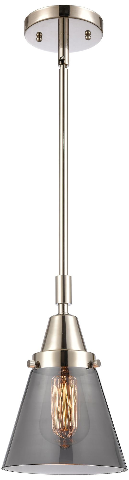 Caden Cone 6"W Polished Nickel Stem Hung Mini Pendant w/ Plated Smoke