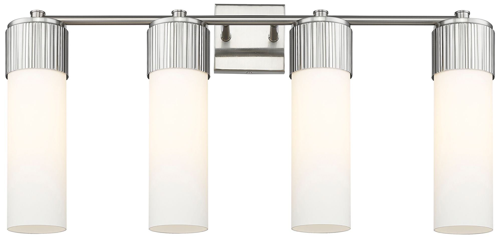 Bolivar 31" Wide 4 Light Satin Nickel Bath Light With Matte White Shad