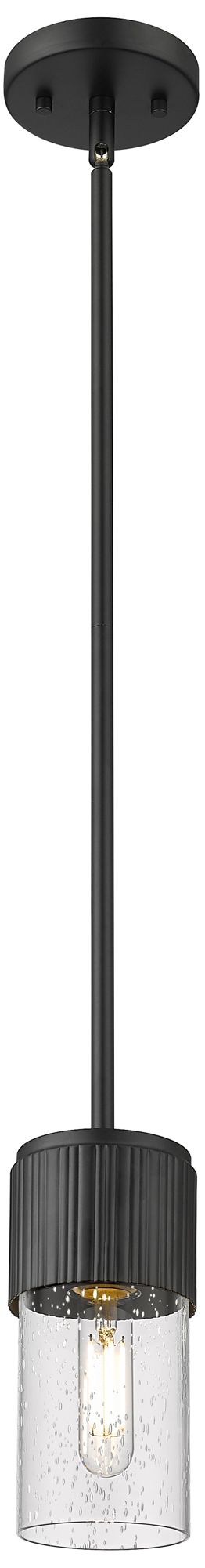 Bolivar 4" Wide Matte Black Stem Hung Pendant With Seedy Glass Shade