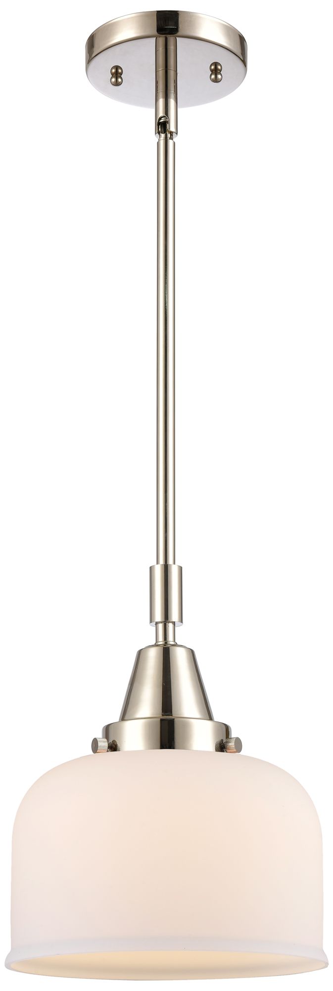 Caden Bell 8" Wide Polished Nickel Stem Hung Mini Pendant w/ White Sha