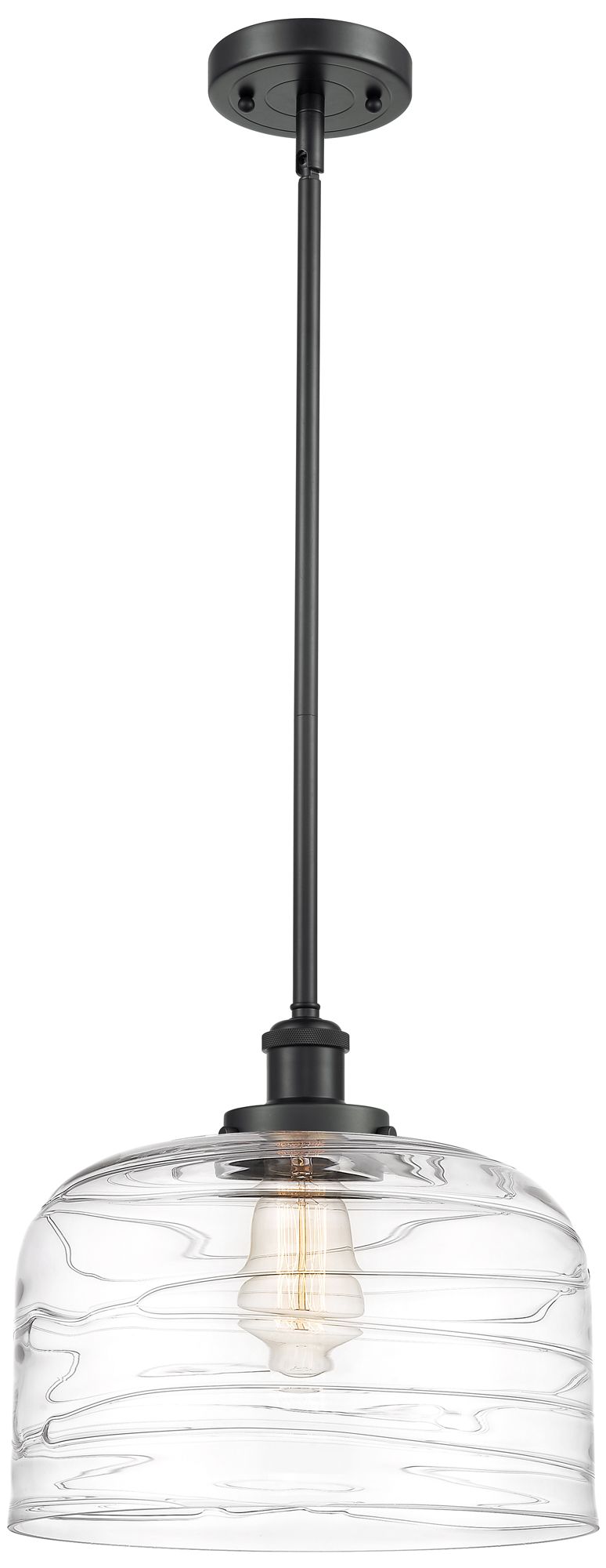 Ballston Urban Bell 12" Matte Black Stemmed Mini Pendant w/ Deco Shade