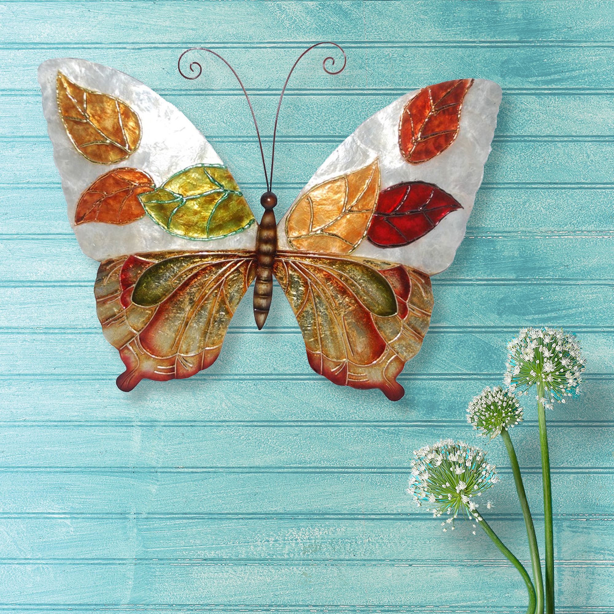 Eangee Butterfly Leaves 18" Wide Capiz Shell Wall Decor