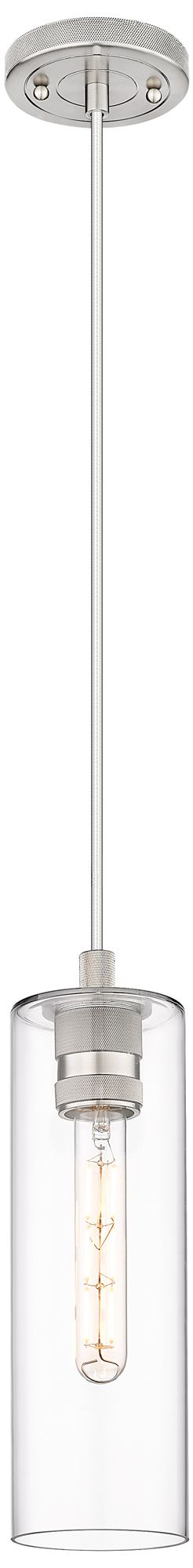 Crown Point 4" Wide Cord Hung Satin Nickel Pendant With Clear Shade