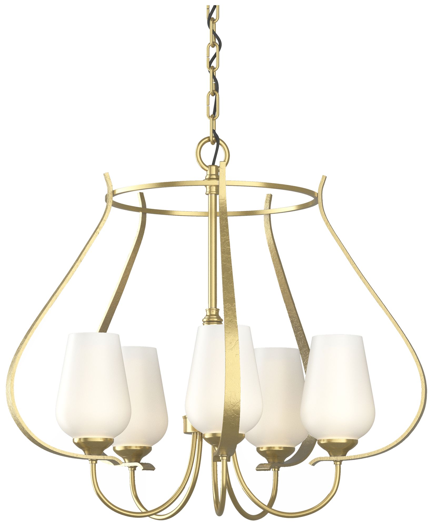 Flora 22.2" Wide 5 Arm Round Modern Brass Chandelier With Opal Glass