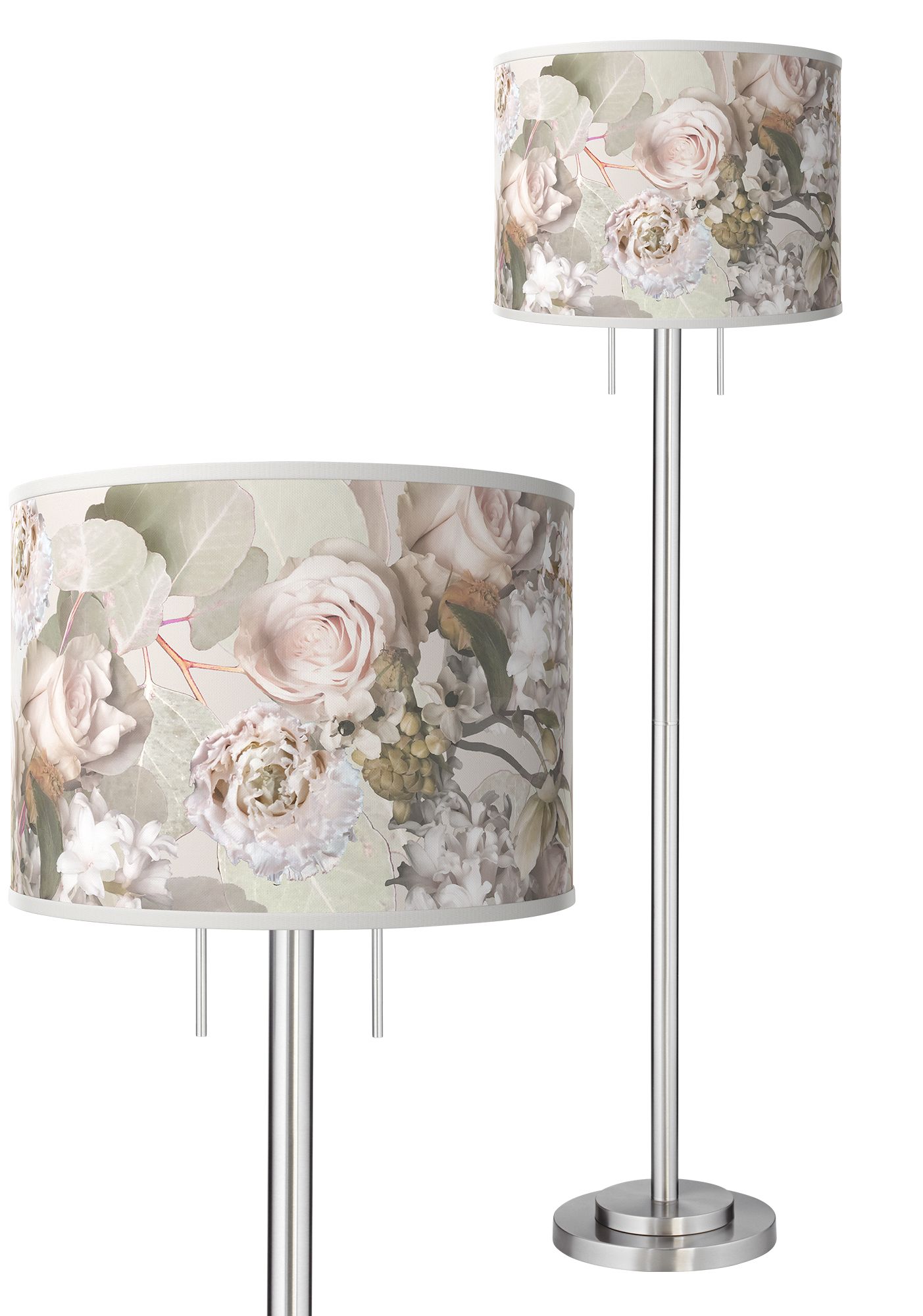 Giclee Glow Garth 63" Rosy Blossoms Shade Brushed Nickel Floor Lamp