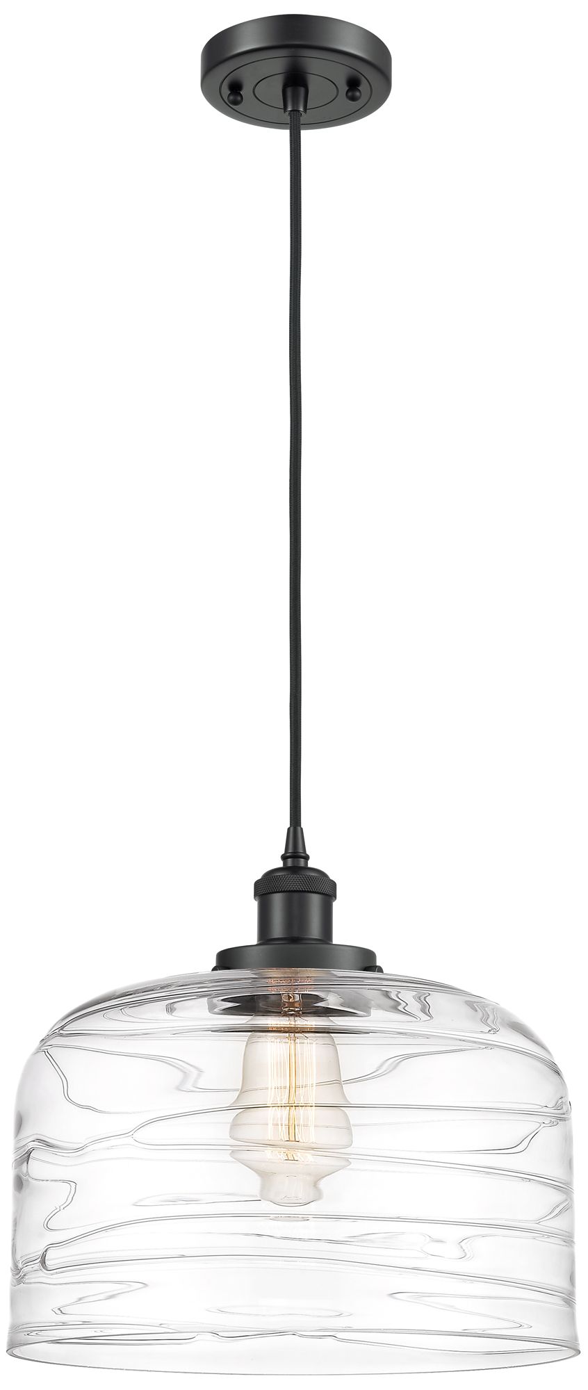 Ballston Urban Bell 12" LED Mini Pendant - Matte Black - Clear Deco Sw