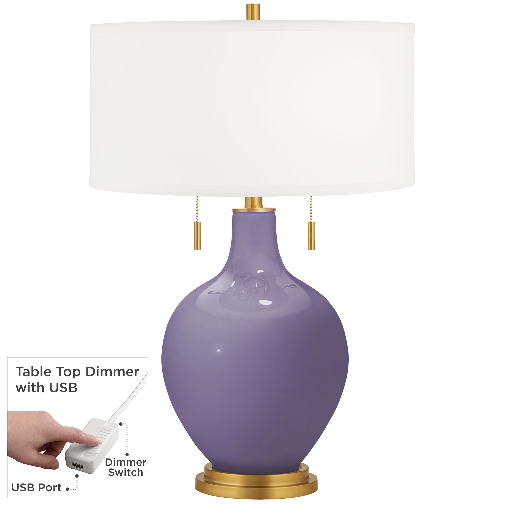 Color Plus Toby Brass 28" Purple Haze Table Lamp with USB Dimmer