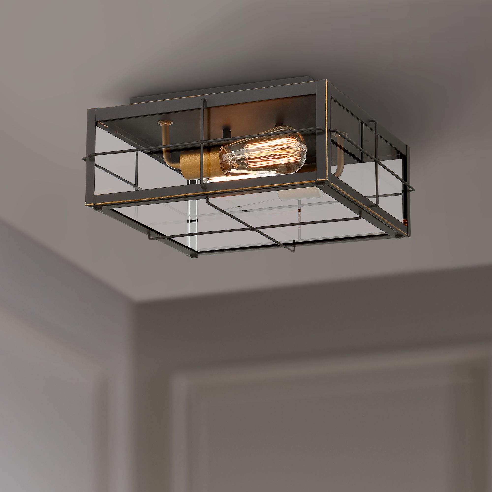 Sunderland 12" Wide Black Gold 2-Light Outdoor Ceiling Light