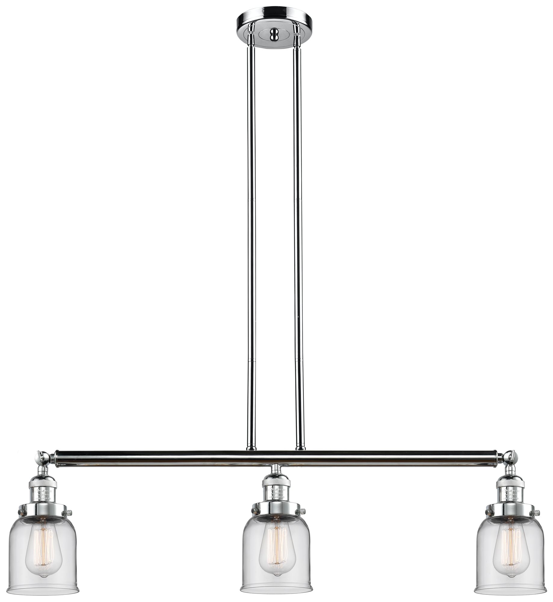 Bell 37.5"W 3 Light Polished Chrome Stem Hung Island Light w/ Clear Sh