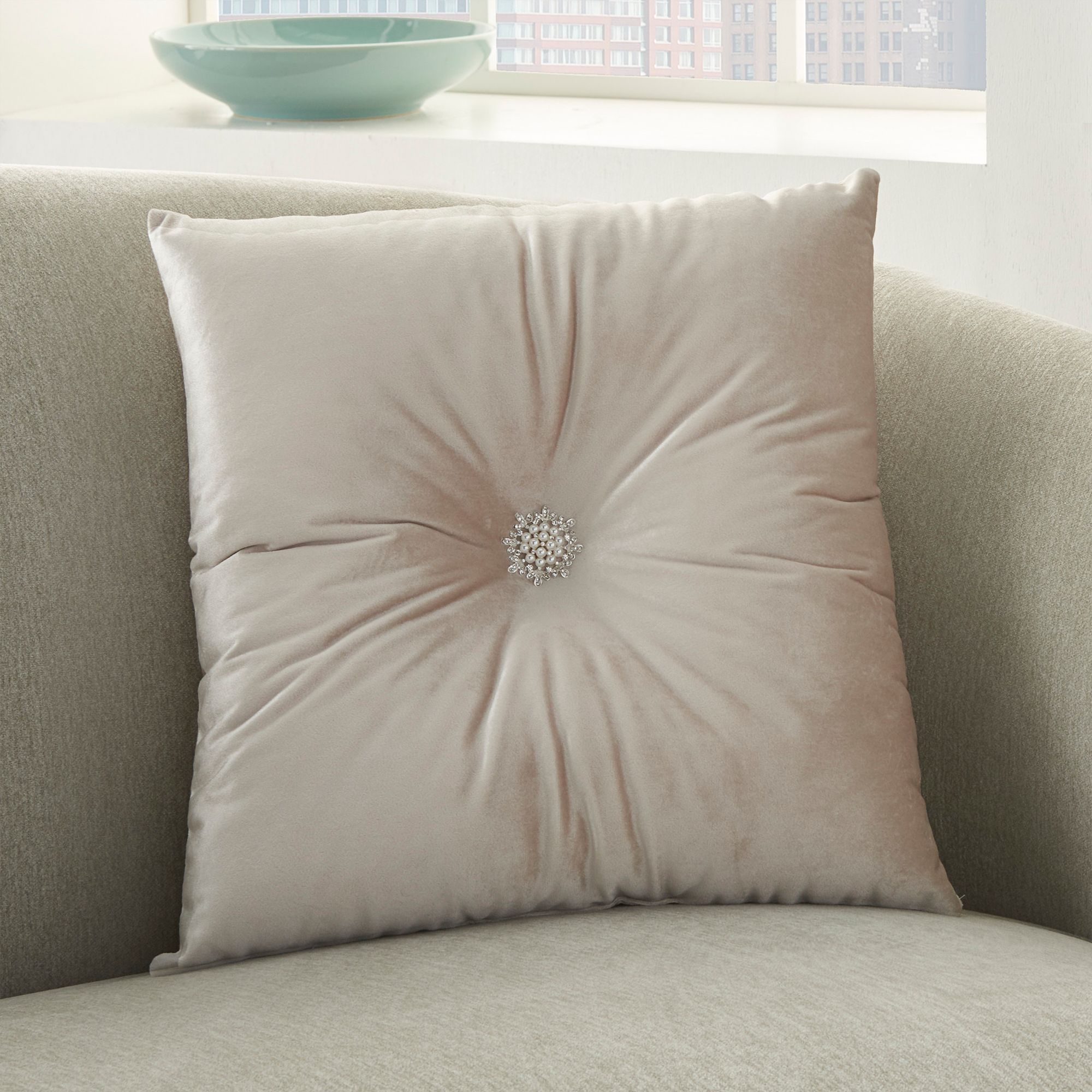 Inspire Me! Home Decor Ivory Center Brooch 18" Square Pillow