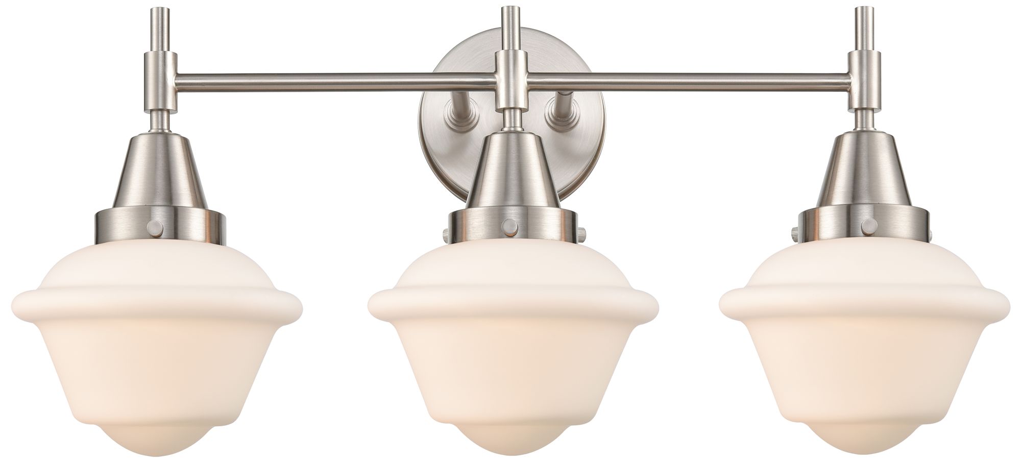 Caden Oxford 25.5"W 3 Light Satin Nickel Bath Vanity Light w/ White Sh