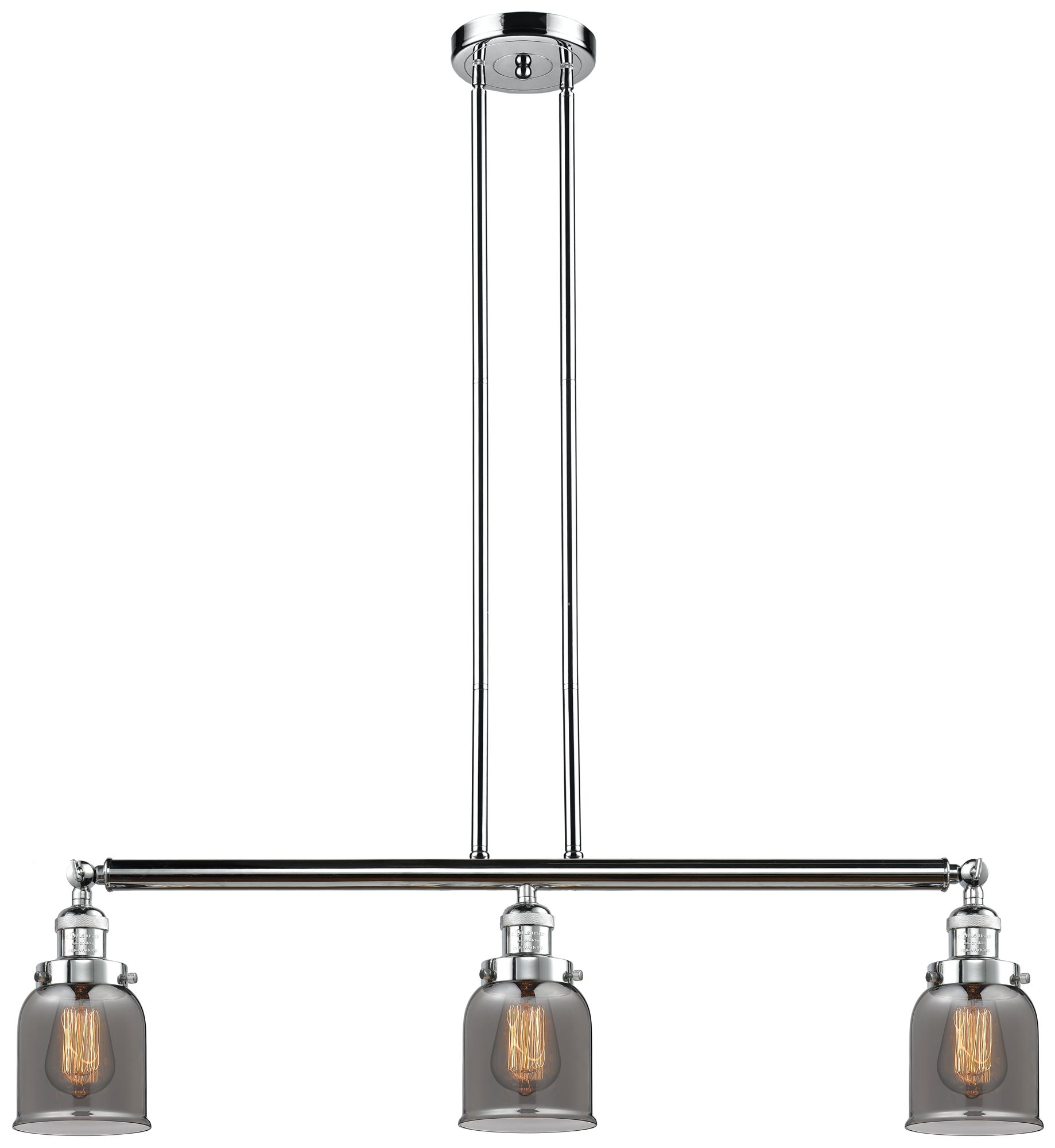 Bell 37.5"W 3 Light Polished Chrome Stem Hung Island Light w/ Smoke Sh