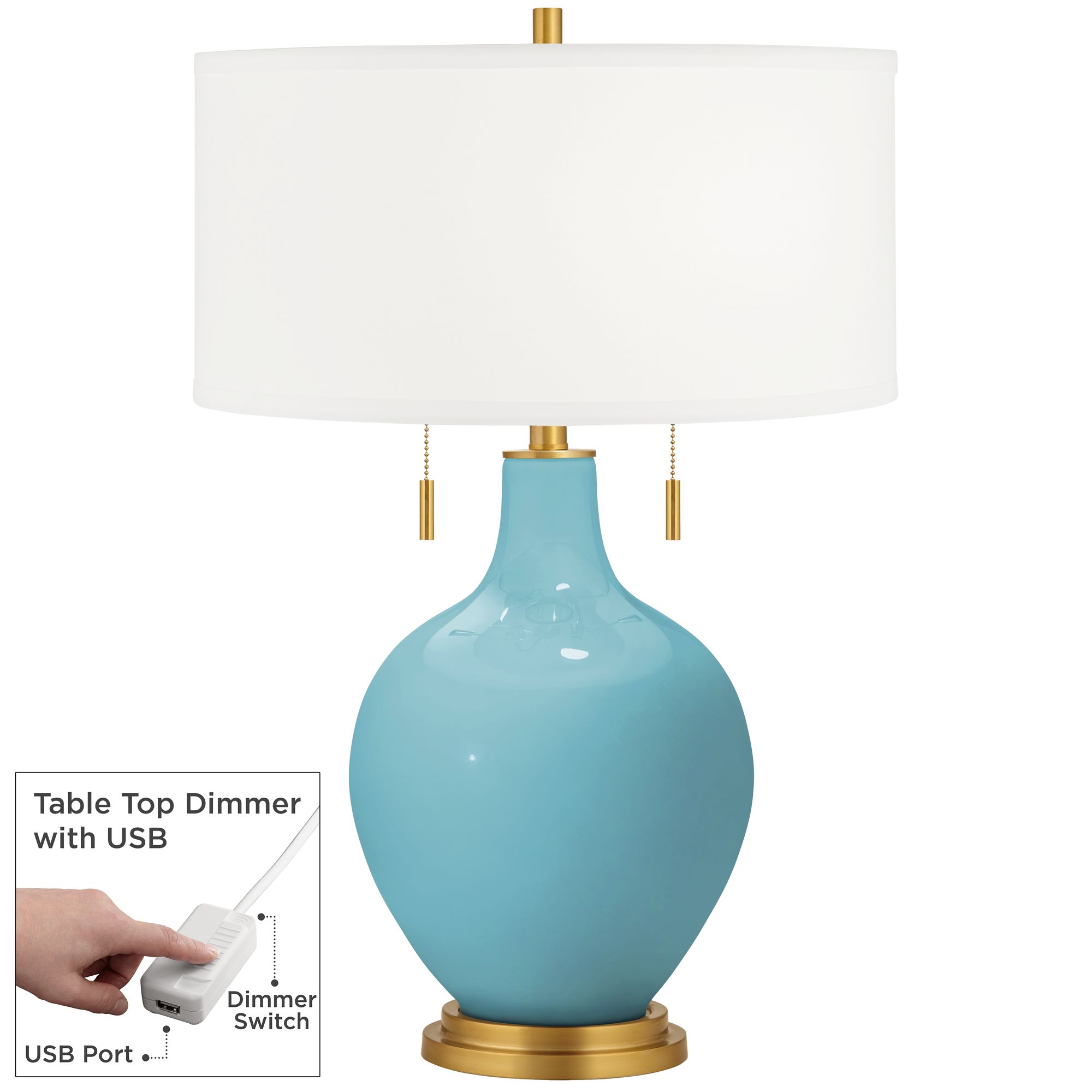 Color Plus Toby Brass 28" Nautilus Blue Table Lamp with USB Dimmer